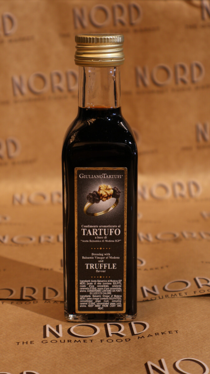 Sweet and tangy balsamic vinegar from modena enhanced with black truffle flavor. perfect for salads and grilled vegetables.