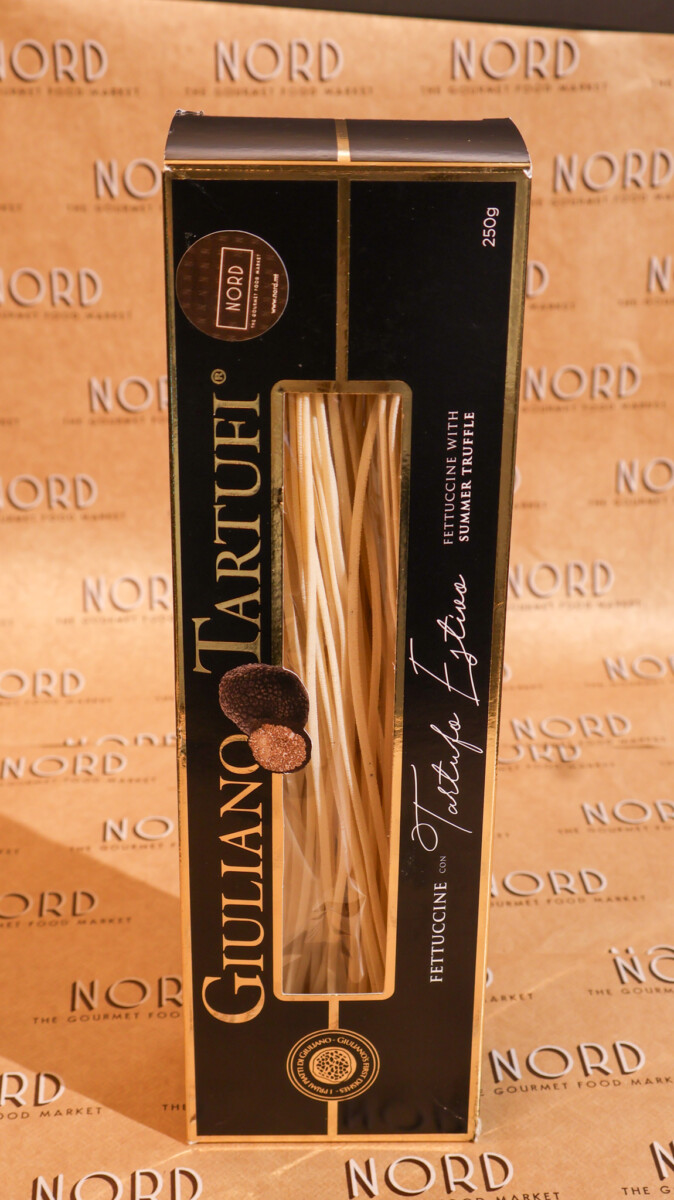 Flat ribbon pasta blended with summer truffle for a balanced, earthy flavor. ideal with light cream sauces or olive oil.