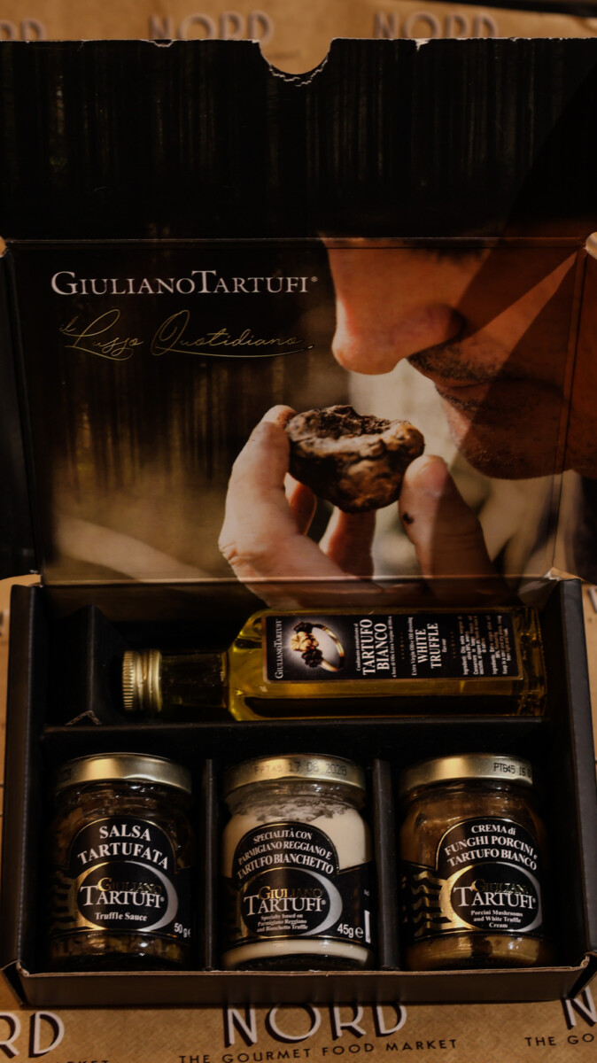 Elegant gift set with four curated truffle specialties. perfect for food lovers.