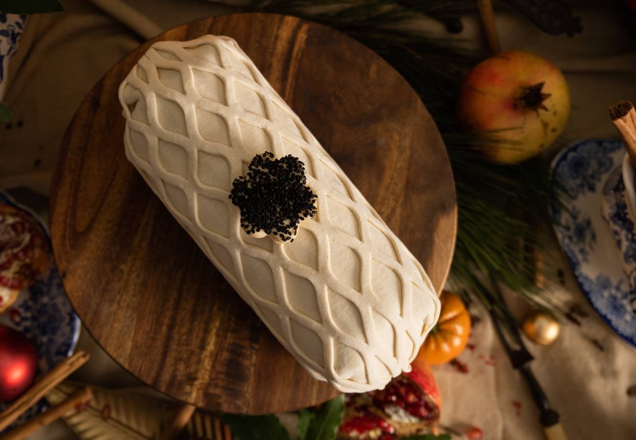 A festive Wellington of duck breast, foie gras, cranberries, walnuts and mushrooms, wrapped in Parma ham and buttery pastry. (Serves 4-5 persons)