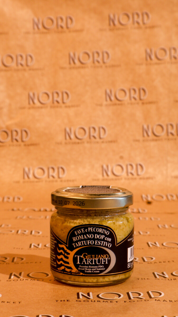Savory pecorino romano pdo blended with broad beans and summer truffle. bold and refined flavor.