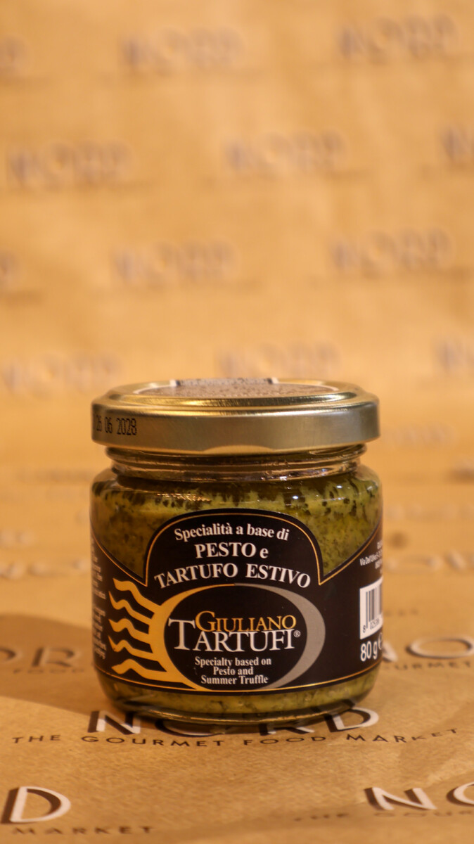 Classic basil pesto enriched with aromatic summer truffle. delicious with pasta or bruschetta.