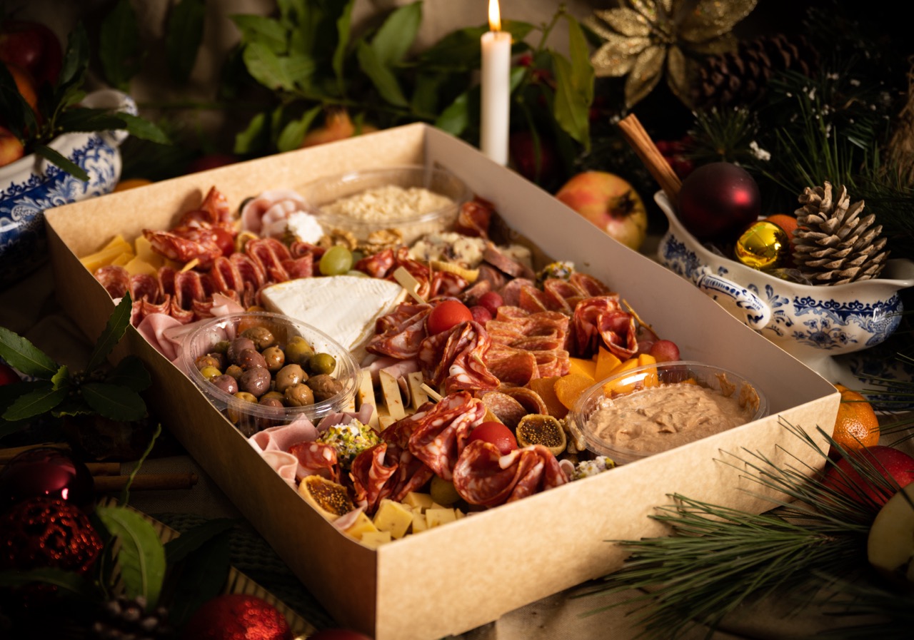Includes 2 assorted dips, one portion of olives, a selection of cheeses such as gouda, old amsterdam, flavoured pecorino, brie, cranberry cheese and red leicester, together with a variety of cold cuts including ventricina, milano, ungherese, speck, mortadella and maltese sausage. finished with feta logs coated in pistachio, fresh grapes, walnuts and crisp grissini. (serves 20)